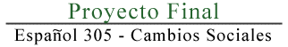 Guía para el Trabajo final El trabajo final es un proyecto de investigación de cuatro páginas (1500 palabras) escritas a máquina a doble espacio sobre uno de los temas o autores que hemos visto en clase. Todos los trabajos deberán incluir como mínimo 3 citas bibliográficas, una de ellas en español. Las citas pueden ser de libros, películas, revistas o citas fiables (reliable) del Internet. Temas posibles incluyen: 1. Las dictaduras latinoamericanas. Escoge un país y desarrolla las razones y consecuencias de la dictadura en un pais específico latinoamericano. 2. Las democracias de los noventas en Latinoamérica. Factores que contribuyeron a la democracia y situación actual de ellas. Escoge un país específico: Venezuela, Chile, México, Colombia, etc. . . 3. Cambios sociales como consecuencia de los cambios politicos. Cambios en la posición de las mujeres, la educación, la familia a causa de la Guerra Civil Española, la dictadura y la vuelta a la democracia en Chile o en España. 4. Influencia cultural de los Estados Unidos en Latinoamérica. Cambios sociales que han ocurrido a causa de esta influencia. Toma en cuenta el cine, la televisión, los restaurantes de comida rápida, etc. . . 5. Biografía de un personaje histórico importante. Por ejemplo: Salvador Allende, Augusto Pinochet, Dolores Ibarruri, el príncipe Juan Carlos, Francisco Franco, Juan Domingo Perón. 6. Temas de la Guerra Civil en España. el establecimiento de las "colonias infantiles", la constitución de 1931, la ideología de los diferentes partidos del Frente Popular, las brigadas internacionales. 7. Arte y propaganda durante la Guerra Civil: los carteles republicanos y fascistas, la reacción de los escritores españoles y extranjeros hacia la guerra, el "Guernica" de Pablo Picasso. 8. Comparación y contraste entre las dictaduras de Augusto Pinochet y de Francisco Franco. 9. La vida cotidiana en Chile durante la presidencia de Allende. 10. El teatro como instrumento de cambio. Análisis de una obra teatral de algún dramaturgo hispano como Alfonso Sastre, Antonio Skármeta, Antonio Buero Vallejo, Federico García Lorca. También se vale: el teatro campesino en los Estados Unidos. 11. La vida en Chile después de la dictadura de Pinochet: Transición hacia la democracia, reflejos de la dictadura. Fechas importantes: Lunes 22 de mayo: Entrega del tema (10) y el bosquejo (outline) (40) con citas bibliográficas según las especificaciones del MLA. (30 puntos en total) El bosquejo debe incluir: a. por qué escogiste el tema Lunes 5 de junio: Entrega de los proyectos finales en mi oficina (105-E Friendly Hall) antes de las 2 p.m. Referencias Bibliográficas Actividad de práctica Ordena la siguiente información según el manual del MLA. Las respuestas están al final de la página. (La forma correcta de las citas está al final de la página) 2. Referencia de una película Respuestas