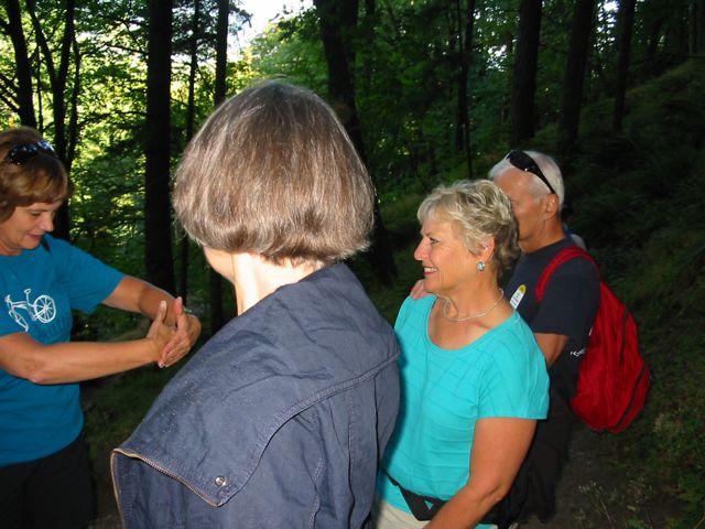 Hiking the Gorge on Saturday, L-->R: Debbie (demonstrating pregnancy?), Ben's wife Janice, Betsy, Werner
