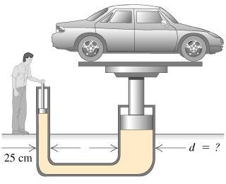 ![]() An interesting application of this result is the hydraulic lift. The important point is that pressures must balance (the applied forces per area) not the applied forces themselves.. If the mouths of the U-tube differ in size from arm-to-arm, then the total force applied to the smaller area arm needed to raise the car will be smaller than the total weight of the car supported by the larger area arm. With only a moderate applied force, a very heavy object can be lifted. The catch is that as the person on the left mush push the fluid much farther than the heavier object is rasied. Regardless, however, heavy objects can be lifted with only moderate applied forces. |