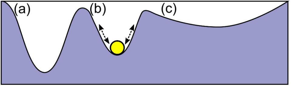 move from well (a) into well (c), they mus be lifted and so require energy