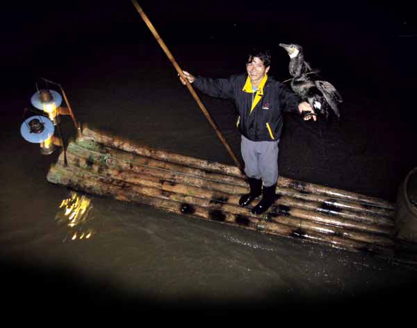 Cormorant fishing: Fish are attracted by the lights and