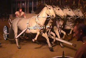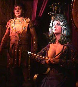 Another lavish costume drama, "Cleopatra". Elizabeth Taylor's beauty, however, was not shared by the legendary last Pharoah of Egypt. Some Roman accounts actually describe her as ugly with a hawkish nose but apparently well endowed with enough feminine charms to seduce both Julius Caesar and Marc Antony. For more on Elizabeth Taylor check out: |