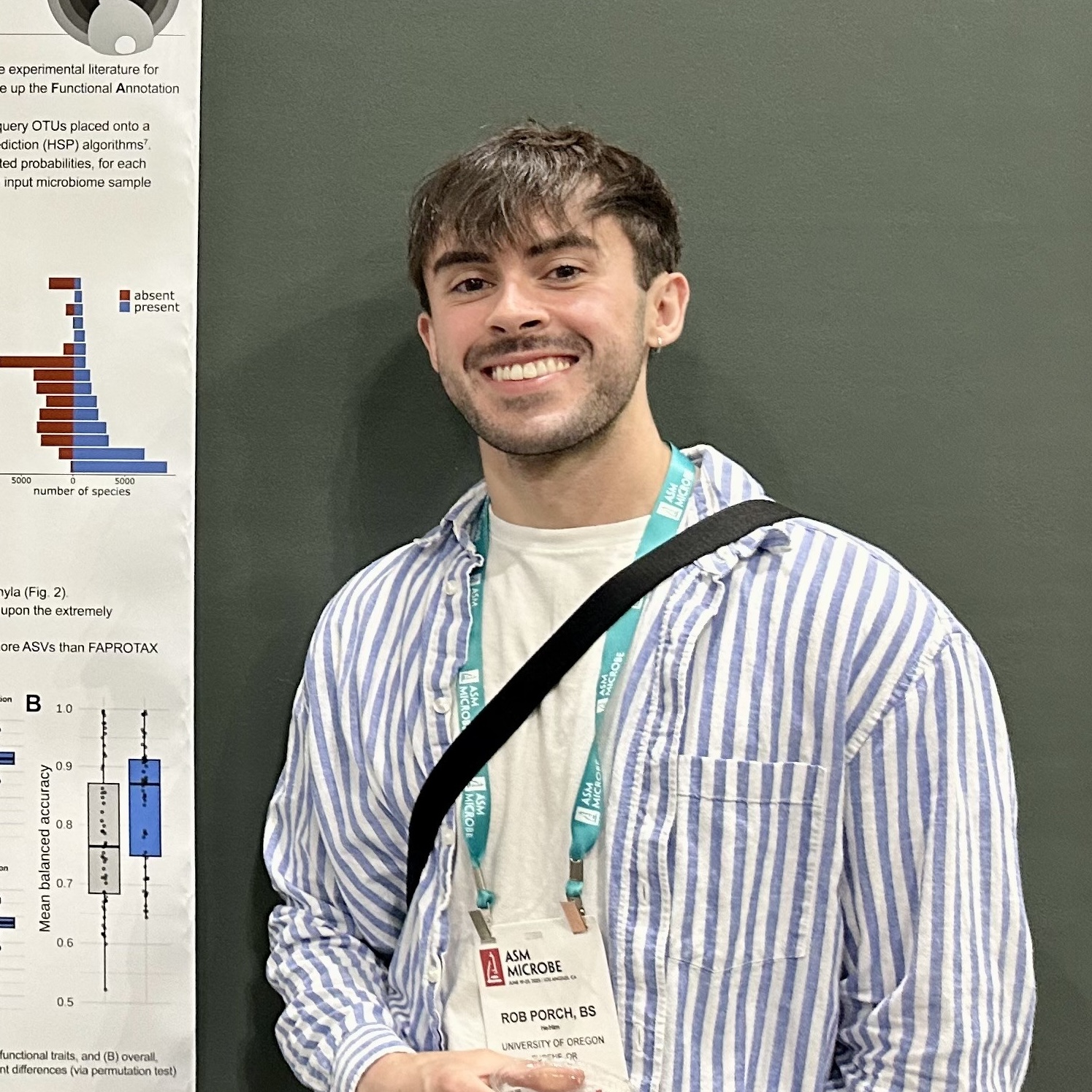 | Rob graduated from Rutgers University in 2020 with a B.S. in Ecology and Evolution and a minor in Statistics. During his 2019 summer REU, Rob worked in Britt Koskella's lab at UC Berkeley, where he discovered his interest in microbial ecology. For his PhD, Rob is using bioinformatics and phylogenetics to develop software to infer metabolic functional traits from prokaryotic taxa. Outside of academics, Rob enjoys making music, running, and video games. |
