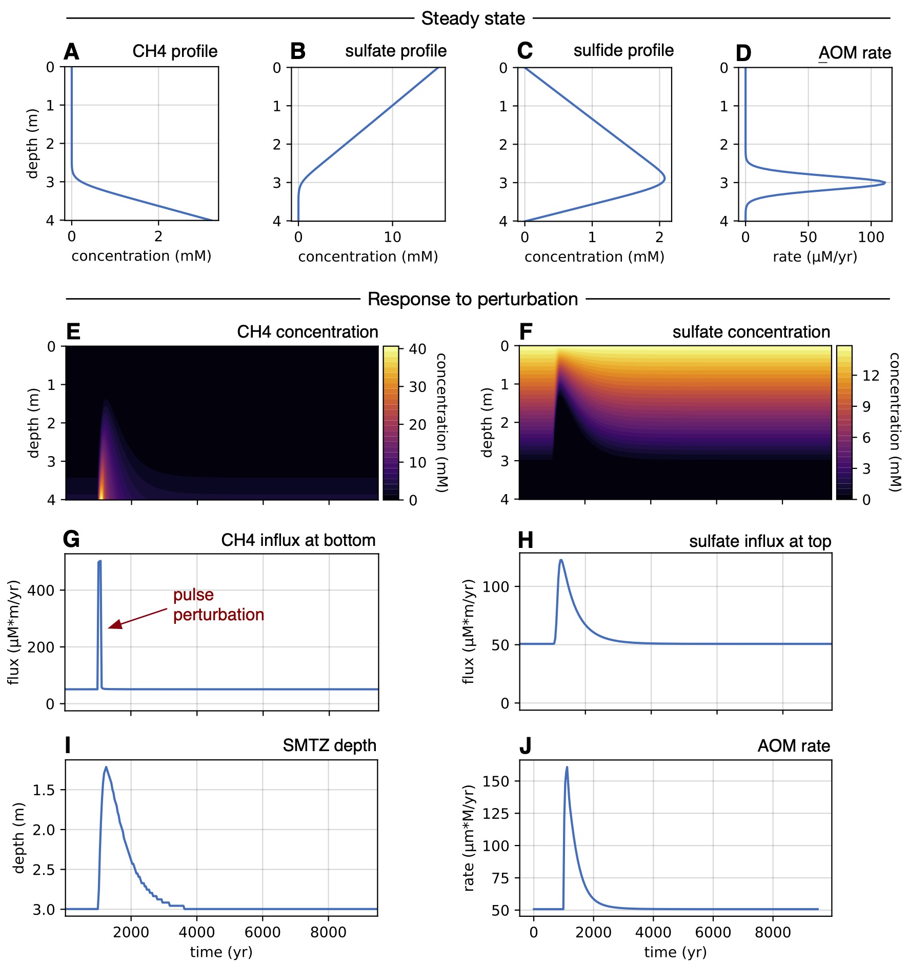 | Reference: Stilianos Louca (2026). Response of marine sulfate-methane transition zones to perturbations in methane fluxes. in review |