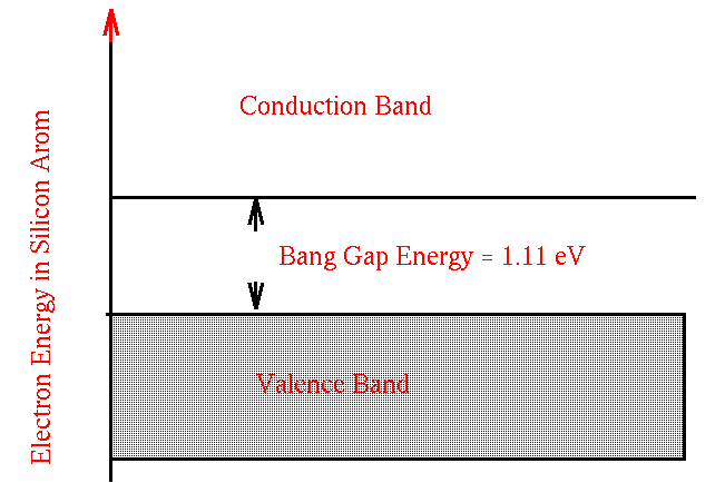 Hence, if a silicon atom receives at least 1.11 Electron Volts from some source, a valence electron will move to the conduction band. Once an electron is in the conduction band, the material can carry a current and the material is now a conductor.