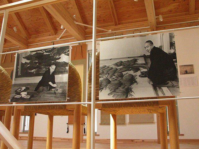 Photos hanging at the Matsuno Geibunkan of the artist at work.